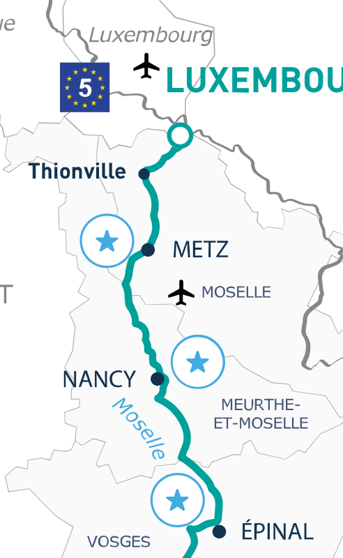 Luxemburg, Europa-Stadt per Excellence, Schengen, Ort der Freien Bewegung in Europa, Metz mit seiner imposanten Kathedrale, Nancy die Jugendstilstadt und Epinal am Rande der Vogesen.