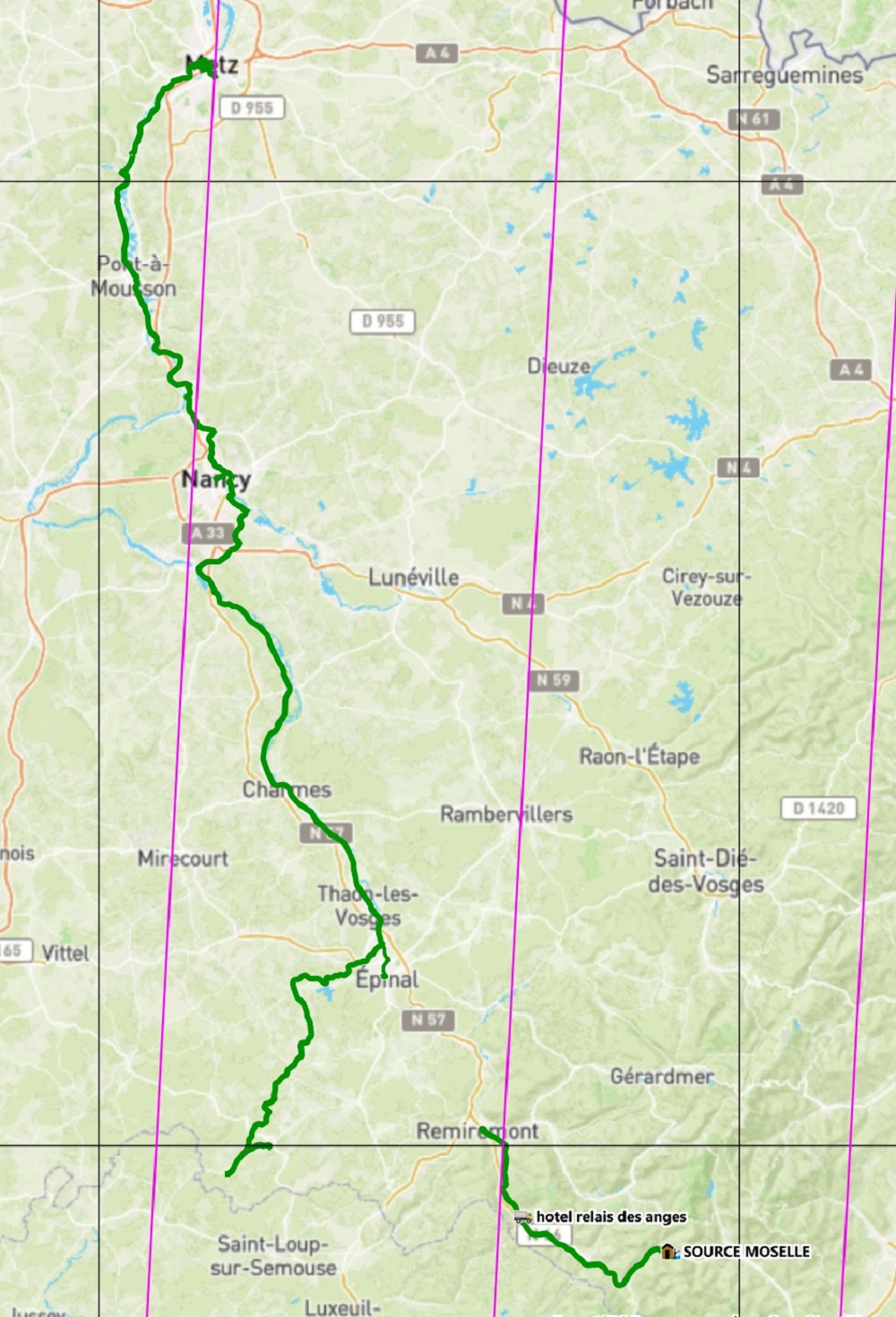 Abfahrt um 09.00 Uhr in Canach/ Glacis. Fahrt mit dem Bus zum "Col de Bussang" an die Moselquelle. Von hier radeln wir entlang der jungen Mosel bergab, auf einer ehemaligen Eisenbahnstraße, bis nach Remiremont. Bustransfer nach Epinal zu unserer Unterkunft.
